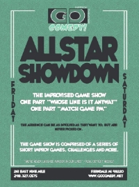 A highly interactive improvised game show and our flagship show - it's one part "Whose Line is it Anyway," and one part "Match Game PM". The audience can be as involved as they want to, but aren't picked on. The game show features a series of short improv games, challenges and more.