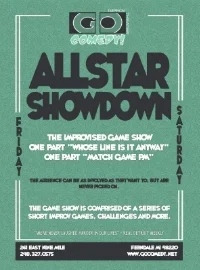A highly interactive improvised game show and our flagship show - it's one part "Whose Line is it Anyway," and one part "Match Game PM". The audience can be as involved as they want to, but aren't picked on. The game show features a series of short improv games, challenges and more.