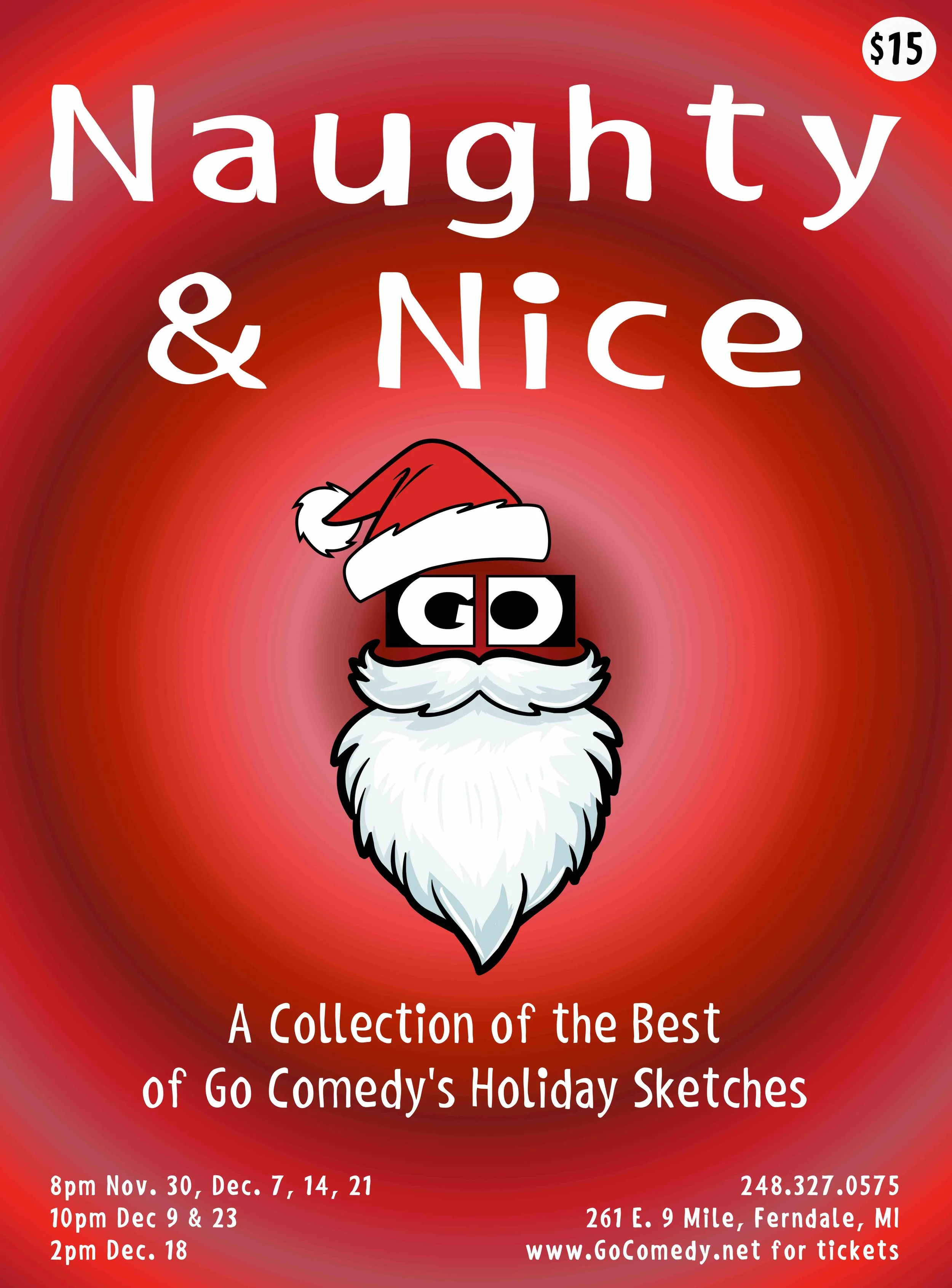 Back to All Events Naughty or Nice ($15) Friday, December 9, 2016 10:00 PM 11:30 PM Google Calendar ICS PURCHASE TICKETS HEREWe've taken our favorite holiday sketches from 7 years of original holiday shows, and put them in one super collection. A great way to get into the holiday spirit!