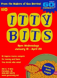 16 three-person teams compete in a bracket-style tournament of short form improv games. Each week two teams will go head-to-head playing randomly selected improv games. At the end of the show the audience will vote on which team they think deserves to move to the next round. The team that makes it to the end wins $500 and a night (TBD) performing in The Go Comedy! All-Star Showdown.