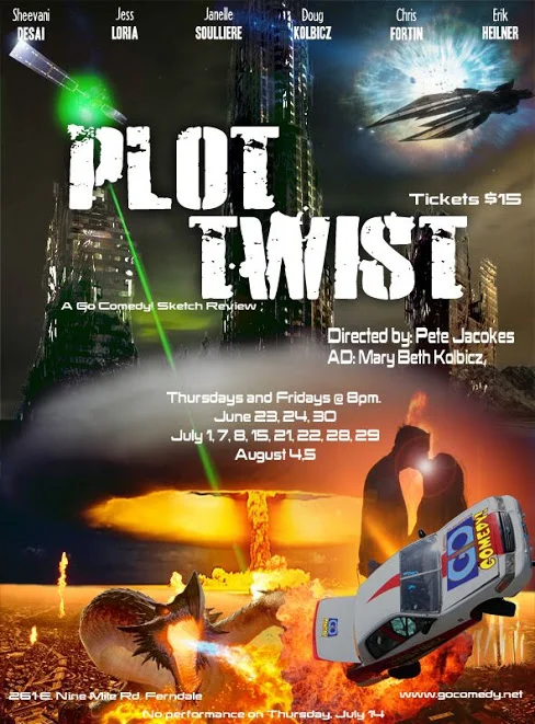 Plot Twist is Go Comedy's latest original sketch revue! Plot Twist takes all of your favorite action movie tropes and puts them onstage, while examining and lovingly satirizing Hollywood and the world of summer blockbusters.