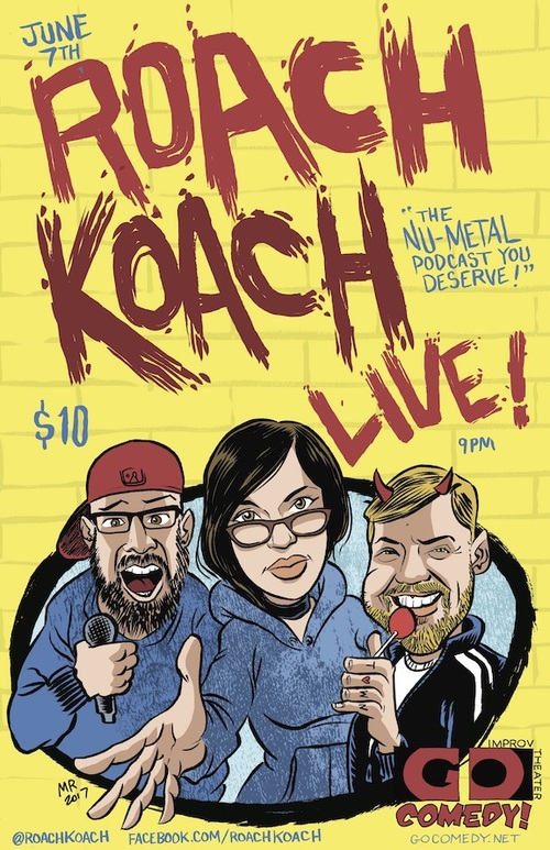 Roach Ryders and Indigo Angels! Come celebrate the one year anniversary of the Nu-Metal podcast you deserve. Jenny Bloomer, Lorin Kozlowski and Matt Naas bring you Roach Koach LIVE. One night only, watch as the Roach Koach crew take on the seminal Korn album, Follow the Leader. A night not to be missed- SHIRTS! STICKERS! A RAFFLE! DRINKS AT THE BAR! WHO'S TWEETING LIVE aka WHO IS SPEAKING TO US DIRECTLY RIGHT NOW. Will a full Korn album finally make it into the nu-metal canon? You've got to be there to find out. Catch up at http://gocomedy.net/roachkoach .