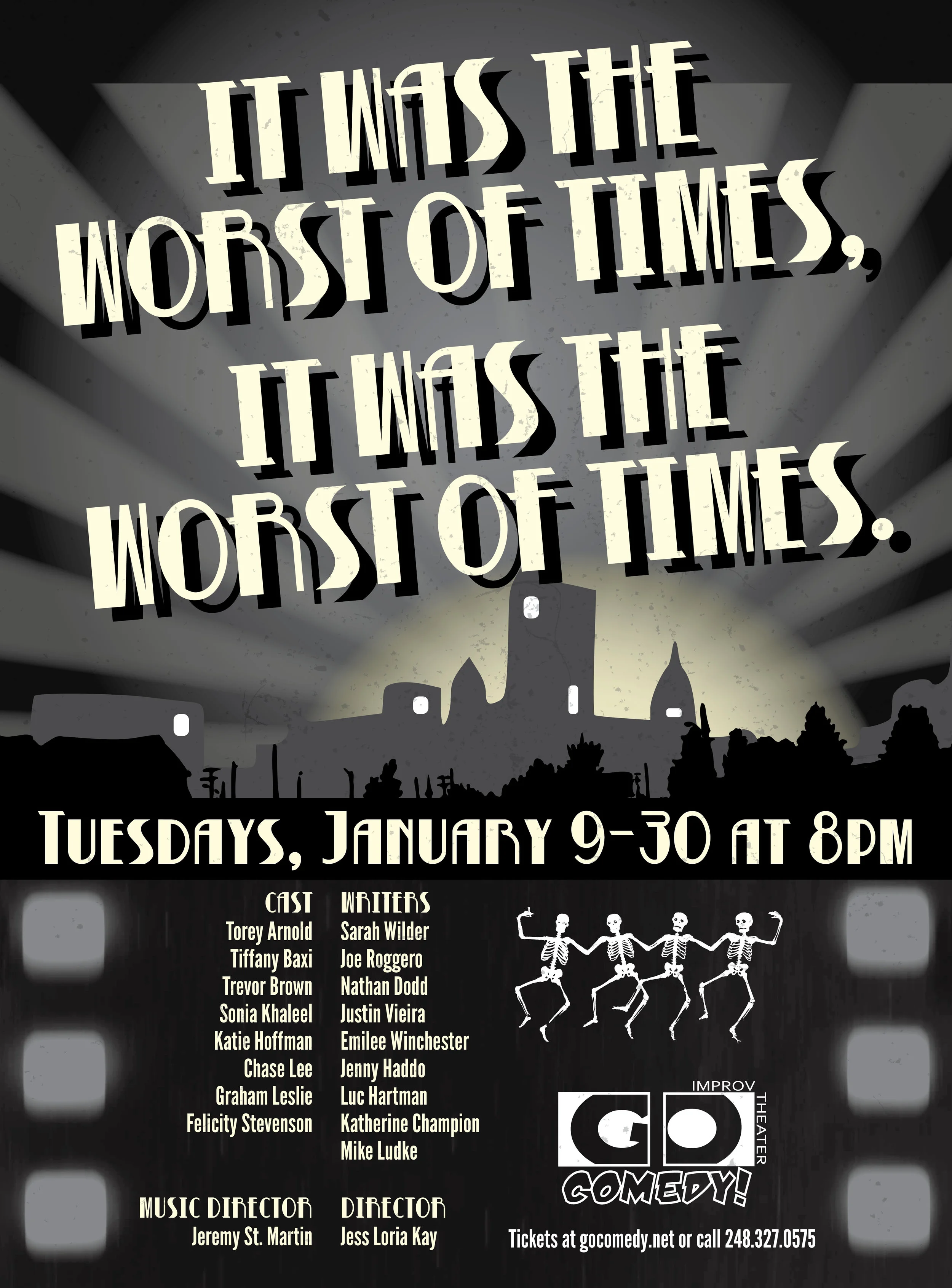 Join the graduates of the Go U Writing Program as they present a show that takes place in the beautiful void between what you want, and what you got. Sometimes expectations don't meet reality, whether it's adopting a new pet, performing a timeless magic trick, or even losing your job -- and the only thing you can do is laugh. It Was the Worst of Times, It Was the Worst of Times is written by: Katherine Champion, Nathan Dodd, Jenny Haddo, Luc Hartman, Mike Ludke, Joe Roggero, Justin Vieira, Sarah Wilder, & Emilee Winchester